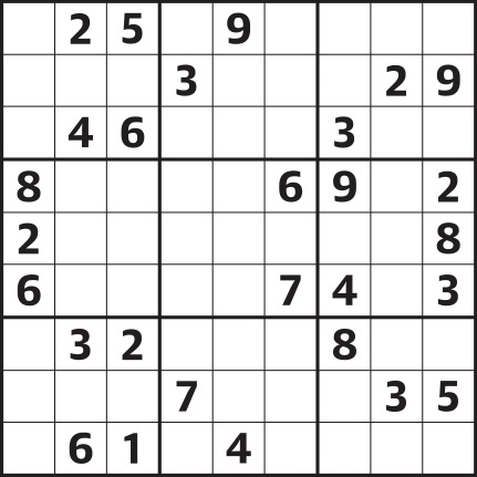 Fill the grid so that every row, every column and every 3×3 box contains the numbers 1 to 9.